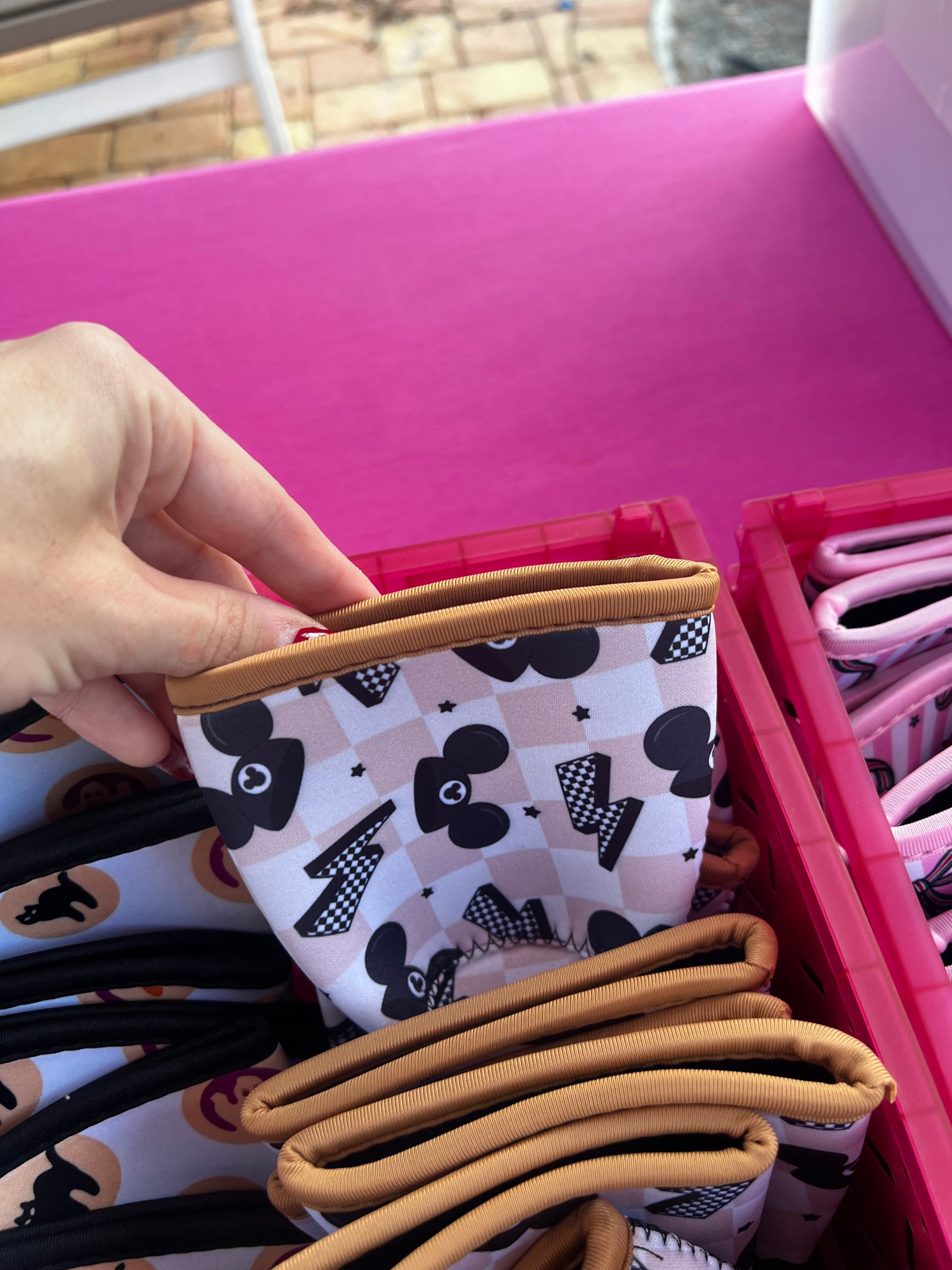 These neoprene covers fit most 16oz - 20oz cups (ex: a grande from Starbucks, a medium from Dutch Bros) and keep your hands dry! They're also washable!