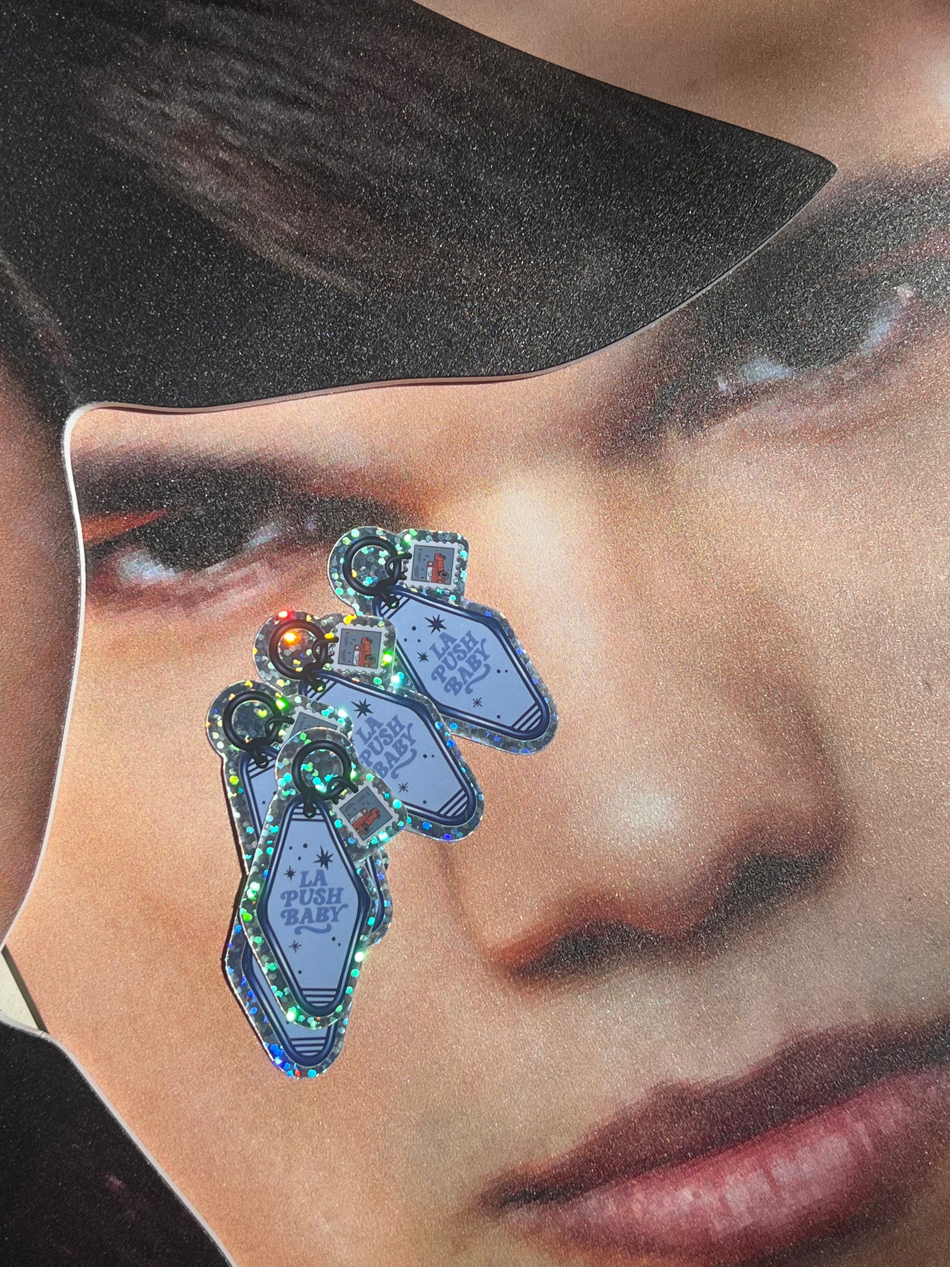 1.3 x 1.9 glossy glitter sticker. hand drawn by me!