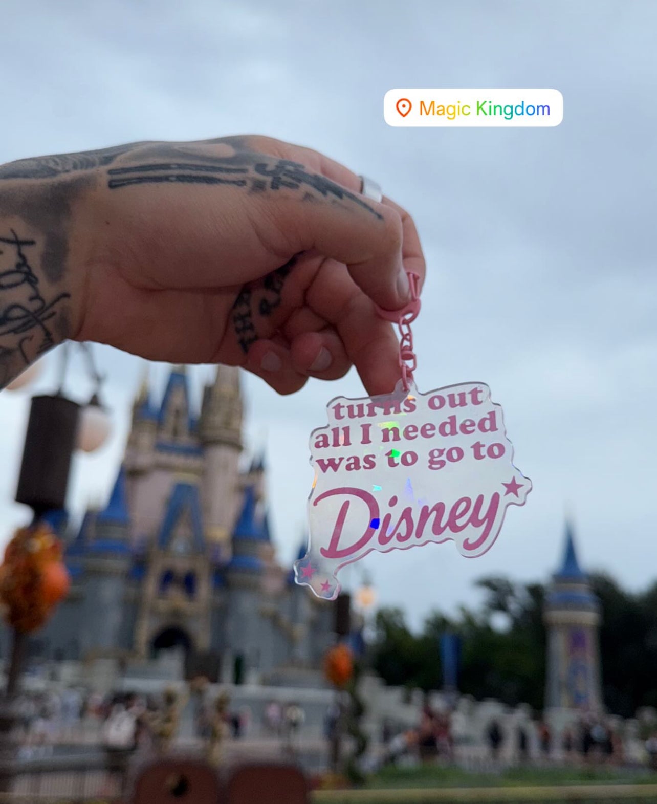 This keychain is double-sided and features a rainbow holographic overlay with a matching bubblegum pink chain!